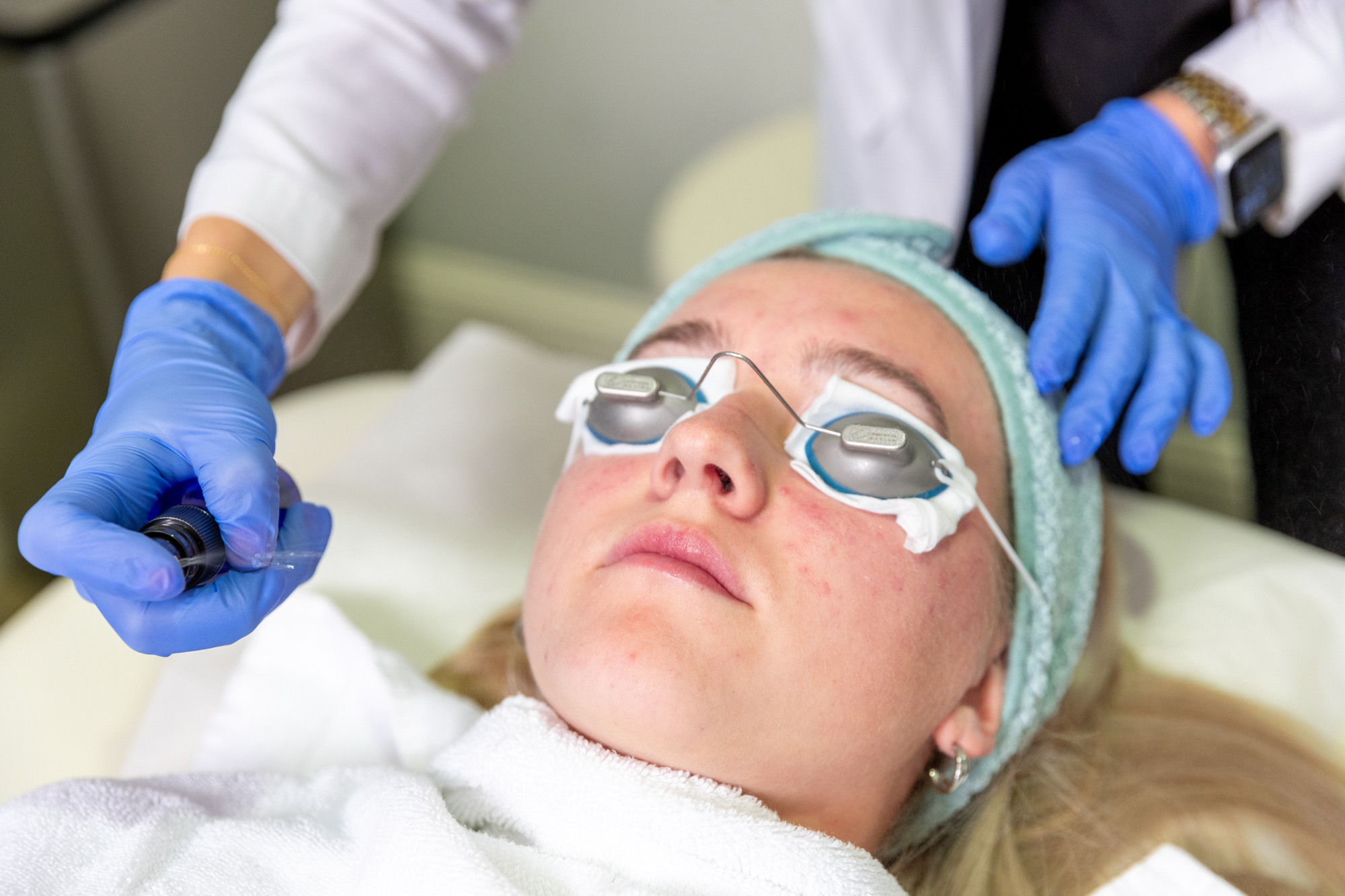 Each treatment plan begins with a thorough consultation to determine your acne type, triggers, and treatment history. Your provider creates a personalized approach that may include topical therapy, oral medication, or advanced treatments such as light therapy or isotretinoin when appropriate.
